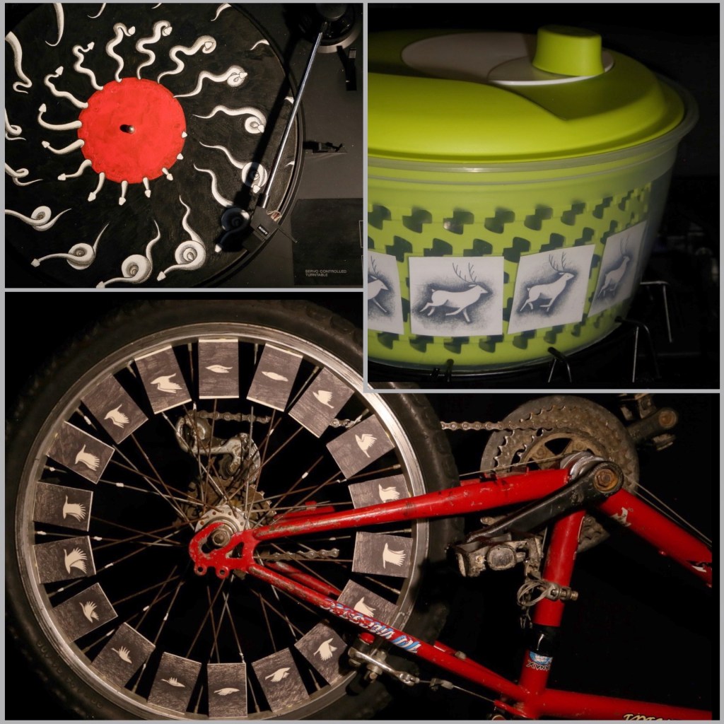 UN LABORATOIRE DU CINEMA D’ANIMATION : S’inspirant des origines du cinéma d’animation et de ses premières machines, l’illustratrice travaille au milieu d’une installation équipée de gadgets et de machineries astucieuses, qui donne vie à ses dessins en direct.